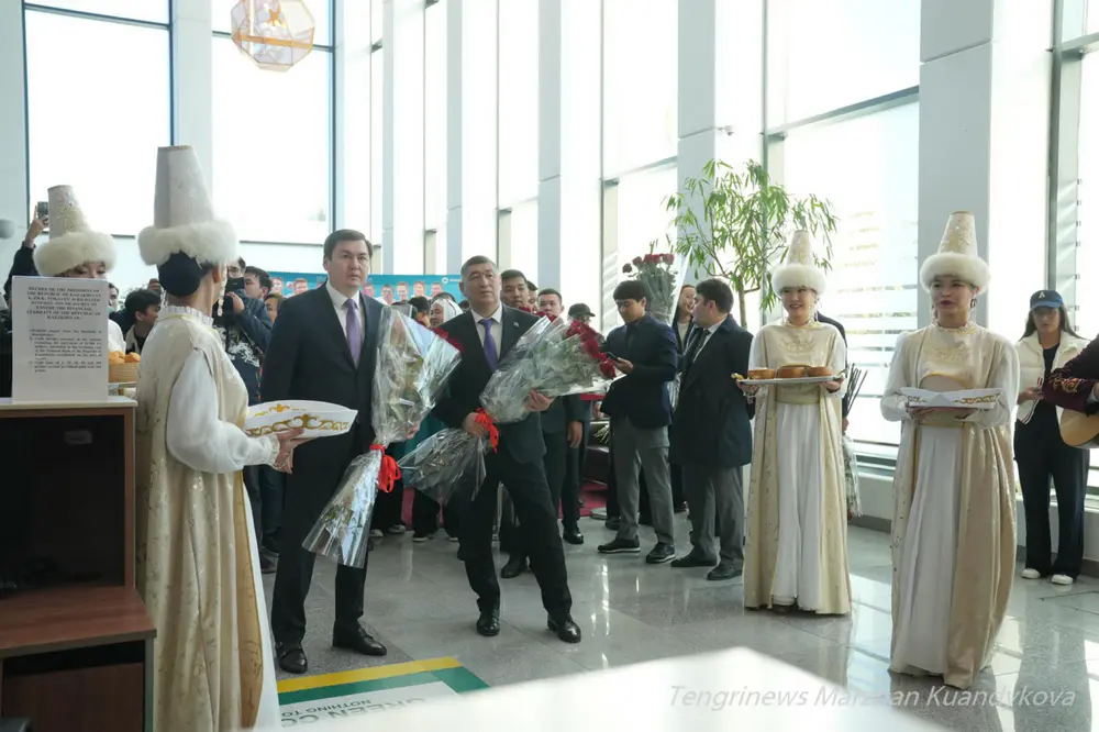 В международном аэропорту Астаны их встретили сотни болельщиков. Спортсменов приветствовали с уважением, девушки в национальных костюмах угощали их кумысом и баурсаками, а музыканты исполняли песни в честь героев.