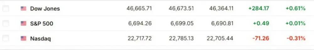 Американские рынки открылись в положительной зоне. Индекс Dow Jones повысился на 0,61%, S&P 500 - на 0,01%, в то время как NASDAQ незначительно снизился на 0,31%.