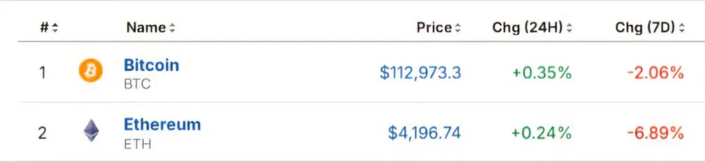 Курс Bitcoin (BTC) увеличился на 0,35%, а Ethereum (ETH) - на 0,24%, поднявшись до 4 196,74 доллара за монету. Это связано с возросшим интересом инвесторов к криптовалютам на фоне неопределенности в экономике и осторожных сигналов ФРС США.