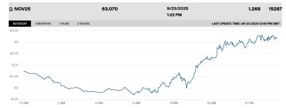 Стоимость ноябрьских фьючерсов на нефть марки WTI увеличилась на 1,27% и составила 63,07 доллара за баррель.