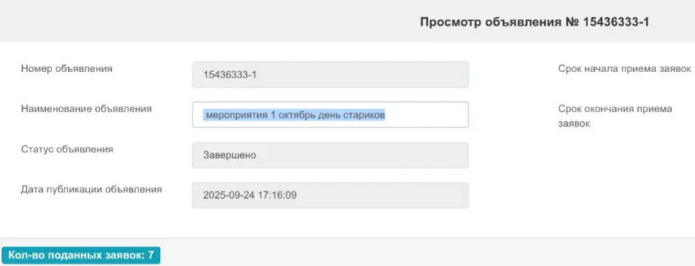 В Каратобинском районе решили провести праздничное мероприятие в честь пожилых людей, объявив тендер на сумму 1,1 миллиона тенге на сайте государственных закупок. Подписание лота с названием "день стариков" выглядит неуместно, особенно учитывая, что речь идет о международном празднике и значительном бюджете.