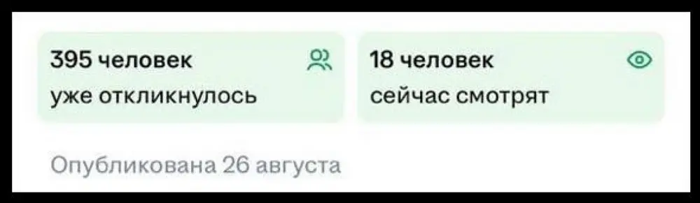 На момент мониторинга вакансией заинтересовались уже 395 человек.