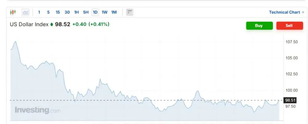 Индекс доллара США (DXY), отражающий его стоимость по отношению к основным валютам, укрепился на 0,41%. Причинами этому стали кризис во Франции, вызванный отставкой премьера, и политическая неопределенность в Японии, где проходят выборы нового лидера ЛДП. Эти факторы способствовали ослаблению евро и иены, что, в свою очередь, увеличило спрос на доллар.