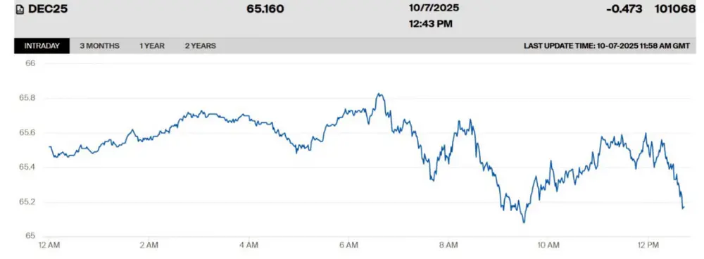 На рынке нефти наблюдается снижение цен. Увеличение добычи со стороны ОПЕК+ и возобновление экспорта из Ирака привели к росту мировых запасов и вызвали опасения по поводу избытка предложения. Так, цена декабрьских фьючерсов на нефть марки Brent упала на 0,47% до 65,16 доллара за баррель, а ноябрьских фьючерсов на WTI - на 0,5% до 61,38 доллара за баррель.