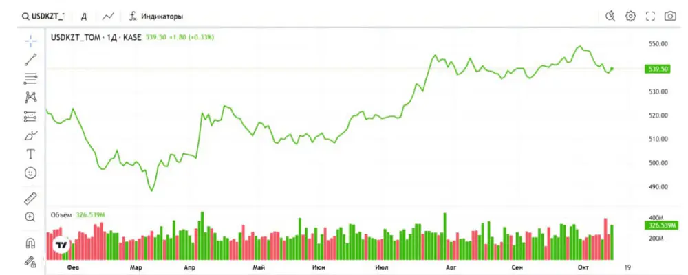 Официальный курс Национального банка на 15 октября составляет 538,63 тенге за доллар.