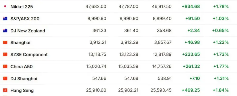 Тем не менее, обострение торговых отношений между США и Китаем продолжает вызывать опасения. Фондовый индекс Shanghai Composite увеличился на 1,22%, индекс Hang Seng - на 1,84%, а японский индекс Nikkei 225 вырос на 1,78%.