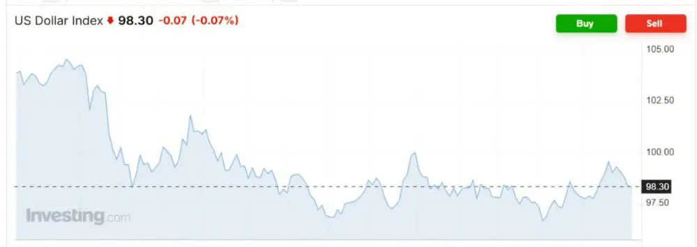 Индекс доллара США (DXY) снизился на 0,07%. Это ослабление связано с заявлениями представителей Федеральной резервной системы (ФРС) о возможности снижения процентных ставок на 25 базисных пунктов. Кроме того, два финансовых учреждения сообщили о проблемах с мошенническими кредитами, что усилило опасения по поводу стабильности региональных банков США на фоне замедления экономического роста из-за продолжающегося шатдауна.