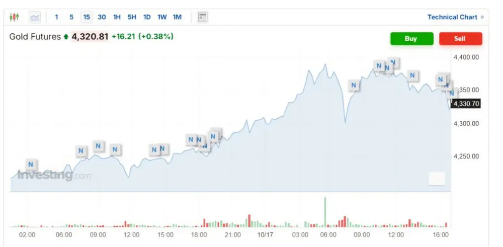 Золото достигло нового рекорда, поднявшись выше 4 300 долларов за унцию. Это связано с увеличением геополитической и экономической неопределенности, ожиданиями снижения ставок ФРС и ростом спроса на безопасные активы.