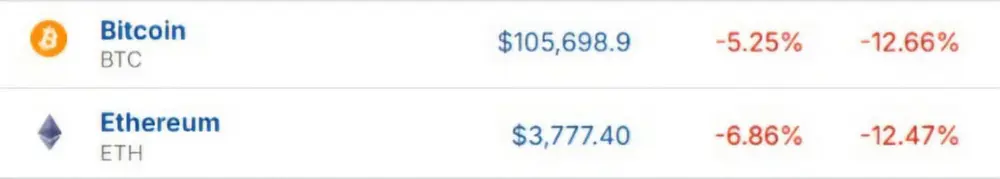 Курс Bitcoin (BTC) упал на 5,25%, а Ethereum (ETH) снизился на 6,86%, составив 3 777,40 долларов за монету. Это падение произошло на фоне перехода инвесторов от рискованных активов к более стабильным в условиях растущей глобальной экономической неопределенности.