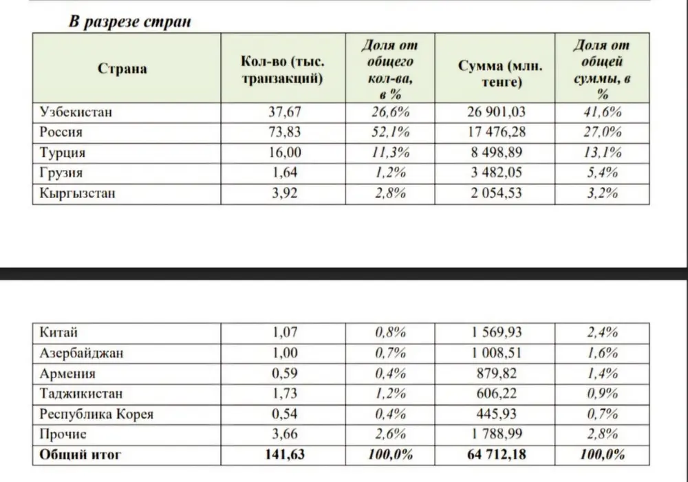 В июне 2023 года Казахстан зафиксировал значительный отток денежных средств за границу, составивший почти 64,7 миллиарда тенге через системы международных денежных переводов (СМДП). В то же время, сумма переводов, поступивших обратно в страну, составила лишь 18,6 миллиарда тенге, что в 3,5 раза меньше отправленных средств.