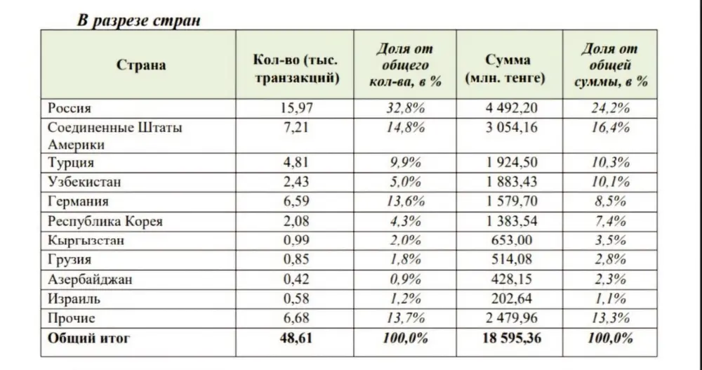 Что касается переводов, поступивших в Казахстан, то наиболее крупные суммы пришли из следующих стран: