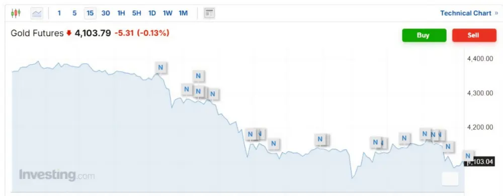 Золото значительно подешевело, так как инвесторы начали переключаться на другие активы после укрепления доллара и повышения доходности казначейских облигаций США. Это сделало вложения в драгоценный металл менее привлекательными. Фьючерс на золото упал на 0,13 процента, достигнув 4 103,79 доллара за унцию.