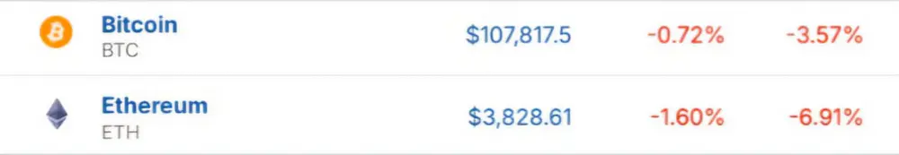 Курс Bitcoin (BTC) снизился на 0,72 процента, а Ethereum (ETH) - на 1,60 процента, составив 3 828,61 доллара за монету. Снижение интереса инвесторов к рисковым активам произошло на фоне растущей неопределённости в мировой экономике и увеличения торговых и геополитических рисков.