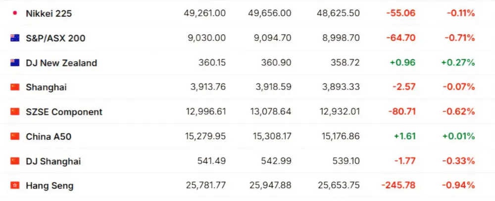 Азиатские фондовые рынки в целом закрылись в минусе на фоне слабых данных по мировой торговле и неопределённости вокруг переговоров США с Китаем и Индией. Индекс Shanghai Composite снизился на 0,07 процента, а Hang Seng - на 0,94 процента. В Японии индекс Nikkei 225 также упал на 0,11 процента.