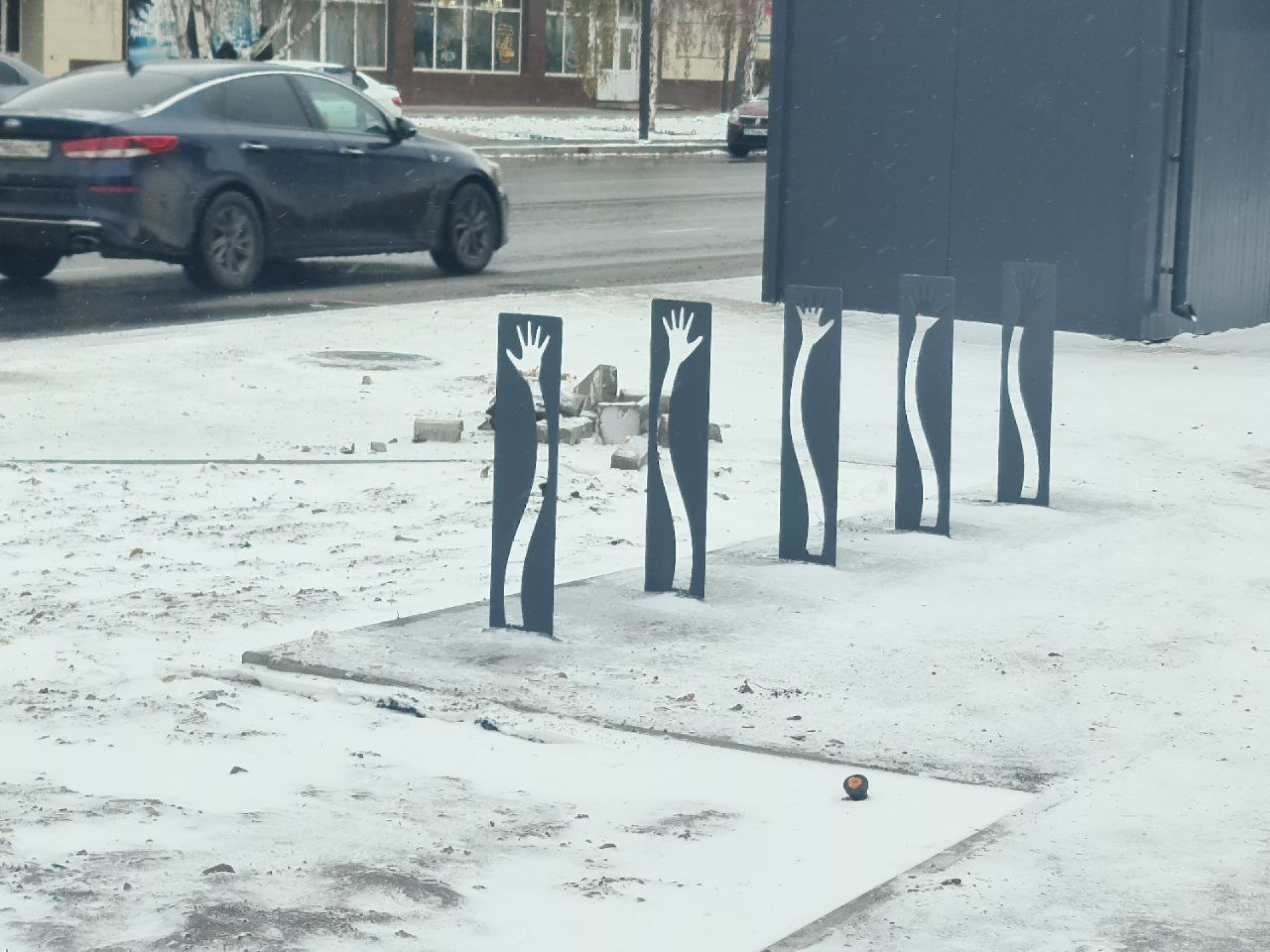 Странные конструкции в виде рук, торчащих из земли, на самом деле представляют собой велосипедные парковки, стилизованные под руки для удобного крепления велосипедов. Всего их 11, каждая рассчитана на пять веломест.