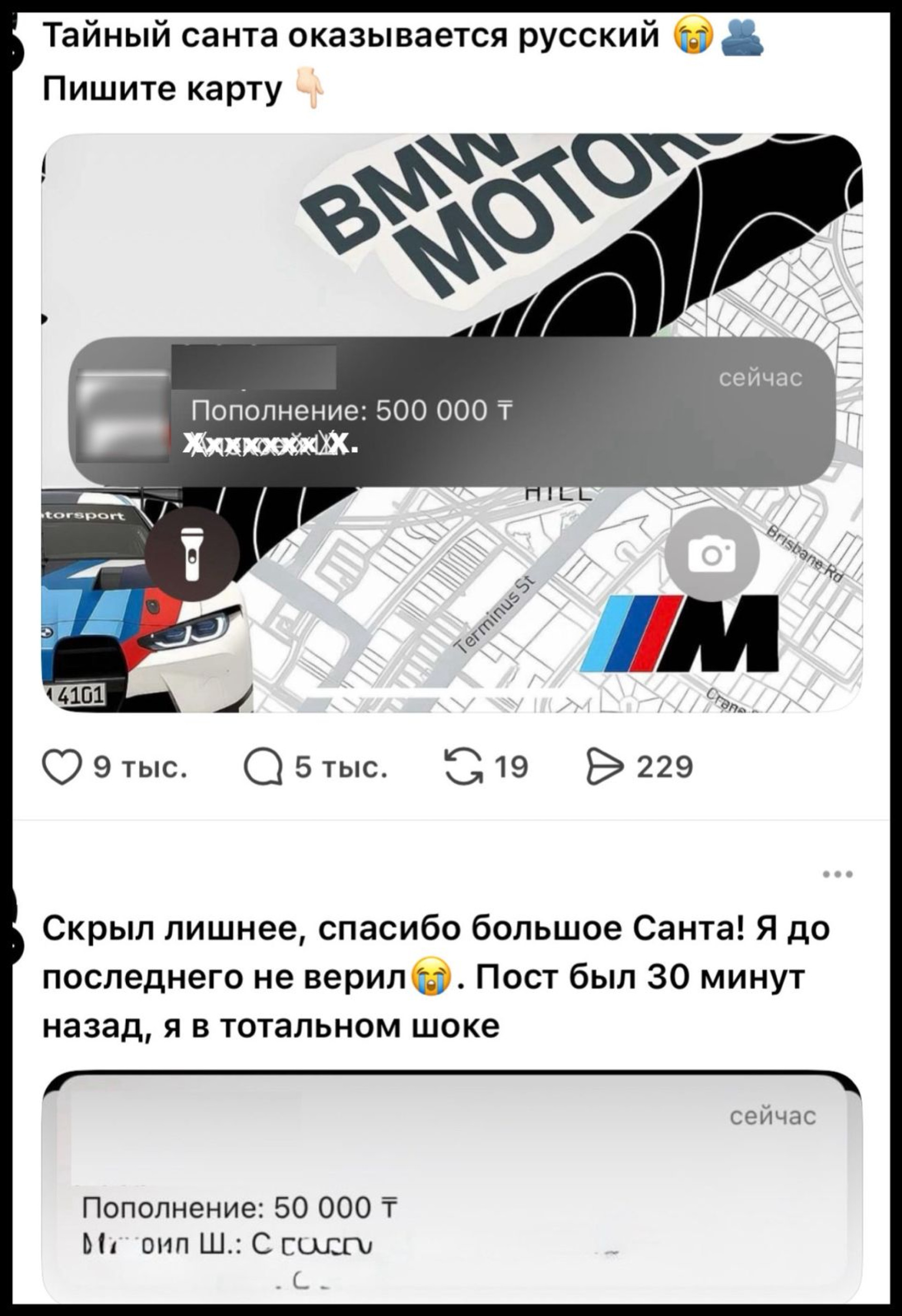 Тренд "Тайный Санта" заключается в том, что пользователи публикуют свои реквизиты с надеждой получить переводы от других. Суммы, которые они ожидают, варьируются от 1500 тенге до десятков тысяч. Некоторые участники даже делятся информацией о переводах в пределах 50 тысяч до 1 миллиона тенге.