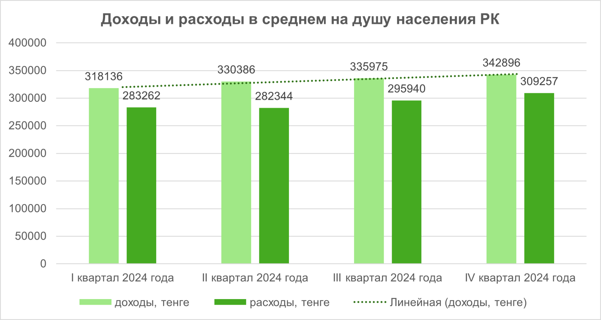 Хотя данные за 2025 год ещё отсутствуют, отчёты Бюро национальной статистики показывают, что в 2024 году к декабрю доходы и расходы на душу населения увеличиваются.