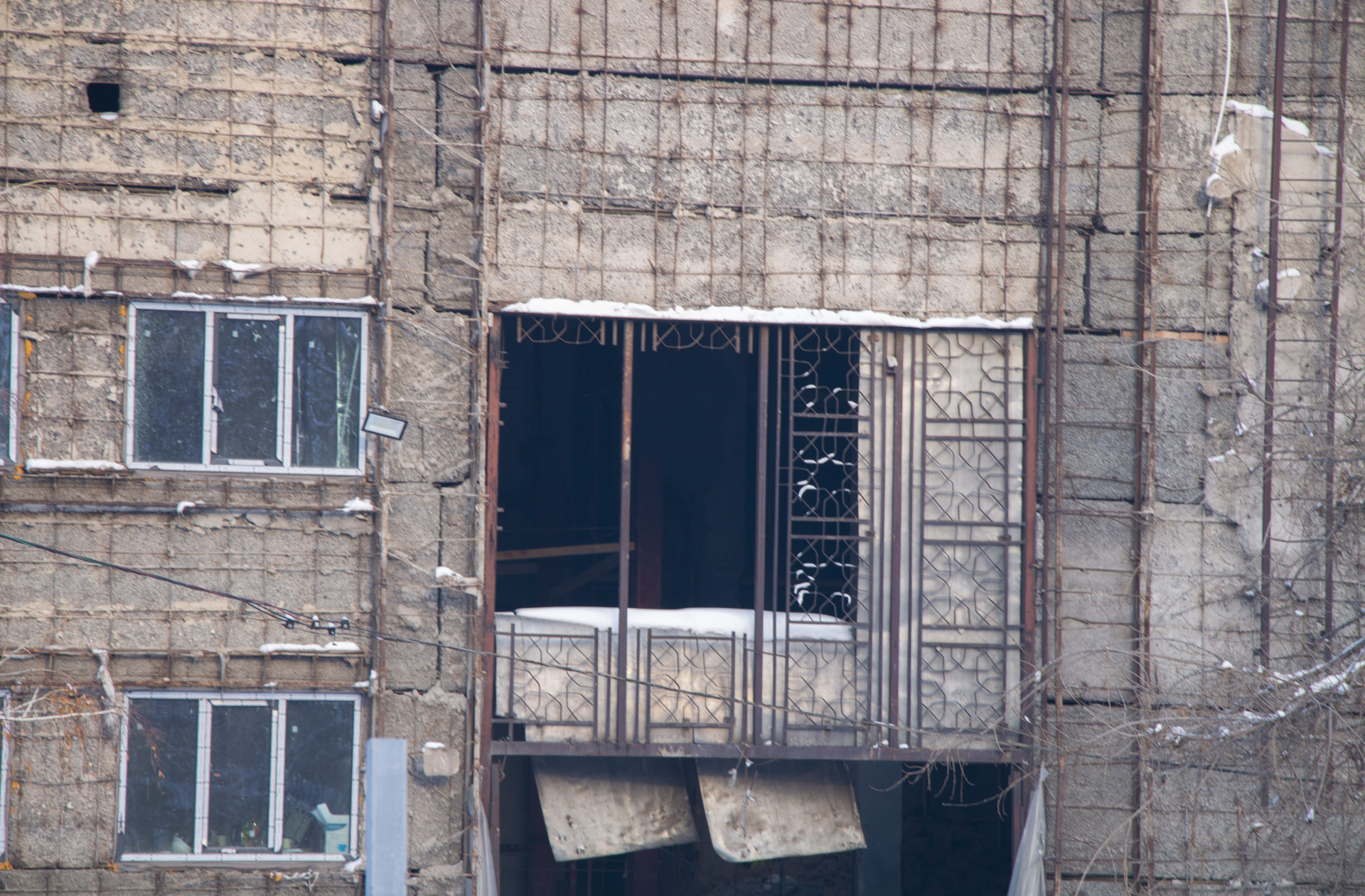 Каркас нового здания ещё не завершён, и его стены не полностью обустроены бетонными блоками.