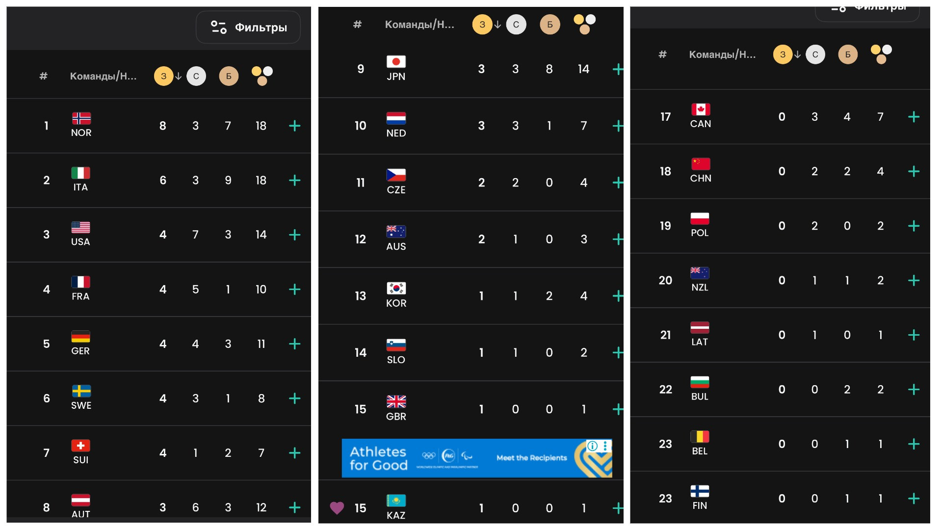 Важно отметить, что в медальном зачёте приоритет отдается золотым медалям, поэтому, хотя победа Шайдорова является единственной наградой для Казахстана на Олимпиаде 2026 года, команда смогла подняться выше стран, у которых уже есть несколько медалей.