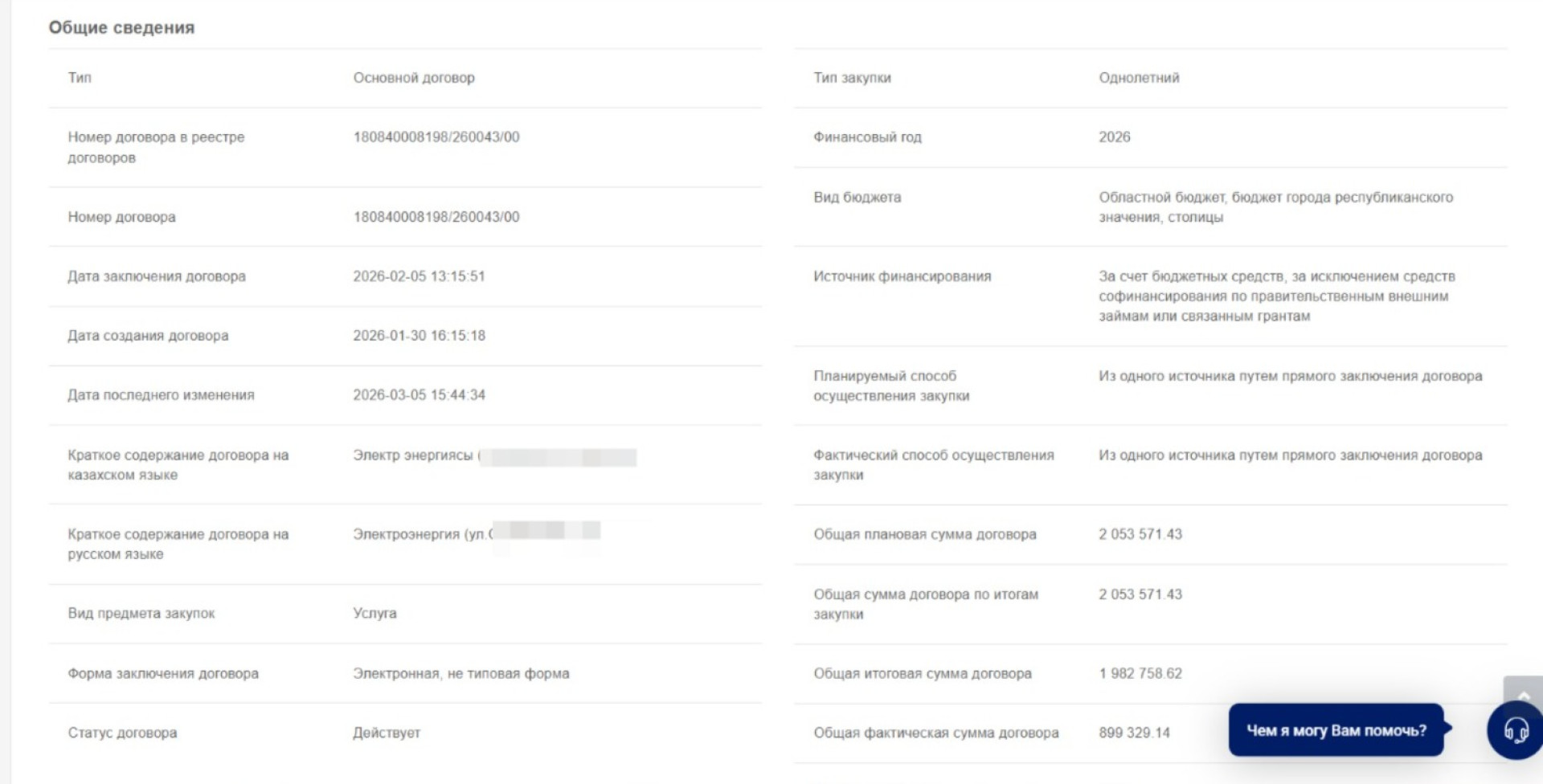 Скриншот тендера на поставки электроэнергии в частный дом в Таразе с сайта госзакупок