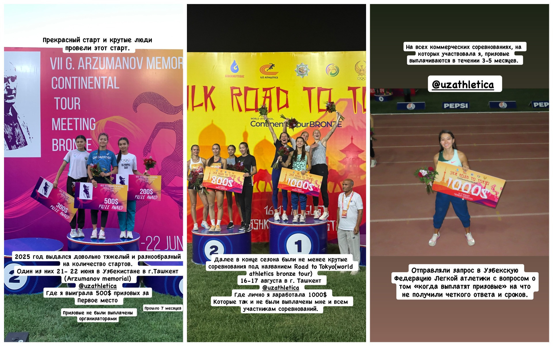 Аделина Земс, четырёхкратная чемпионка Азии по бегу на 400 метров из Казахстана, уже более года сталкивается с проблемами получения призовых от Узбекистанской федерации легкой атлетики. Сумма, которую ей должны, составляет 1 500 долларов (около 750 тысяч тенге). Эти выплаты связаны с её участием в двух соревнованиях, прошедших летом 2025 года.