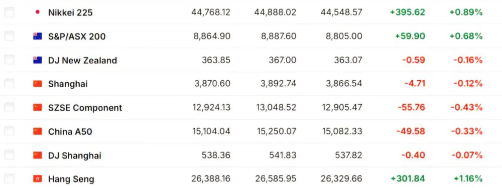 Азиатские фондовые рынки демонстрируют разнонаправленную динамику. В Японии индекс Nikkei 225 увеличился на 0,89% благодаря сильным показателям технологических компаний и экспортёров, чья прибыль растёт на фоне слабой иены. В Китае индекс Hang Seng также окреп на 1,16%, поддерживаемый акциями технологического сектора и фармацевтики, в то время как Shanghai Composite снизился на 0,12%.