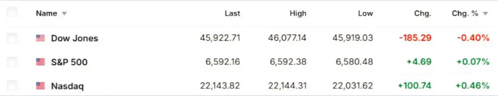 Американские фондовые рынки открылись смешанно. Индекс Dow Jones снизился на 0,40%, в то время как S&P 500 и NASDAQ выросли на 0,07% и 0,46% соответственно. Инвесторы настроены осторожно: недавние экономические данные укрепляют надежды на снижение ставок Федеральной резервной системы (ФРС), что поддерживает S&P и Nasdaq. В то же время, индекс Dow испытывает давление из-за фиксации прибыли после рекордных максимумов.